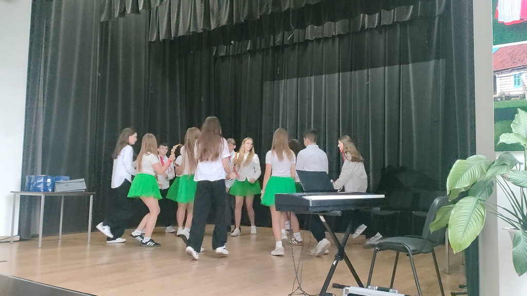 Na zakończenie wszyscy uczniowie z klas 7-8 z terenu gminy Podegrodzie zatańczyli wspólnie w głównej sali GOK taniec belgijski, który zjednoczył młodych Europejczyków w radosnym rytmie!