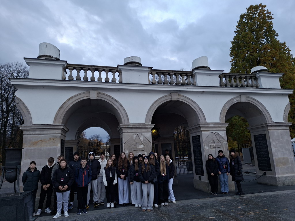 W ostatnim dniu wycieczki wybraliśmy się na Cmentarz Wojskowy na Powązkach, gdzie przewodnik przeprowadził nas przez aleje zasłużonych oraz miejsca spoczynku bohaterów, żołnierzy walczących w obronie ojczyzny, sławnych ludzi nauki filmu, kultury, polityki, dziennikarstwa itp. W dalszej części dnia w towarzystwie przebijających się promieni słońca spacerowaliśmy po malowniczych Łazienkach Królewskich zaczynając od Belwederu a kończąc przy pomniku konnym Jana III Sobieskiego. Ostatnim punktem wycieczki była wizyta w Sejmie RP, gdzie uczniowie zdobyli wiedzę o niższej izbie polskiego parlamentu.