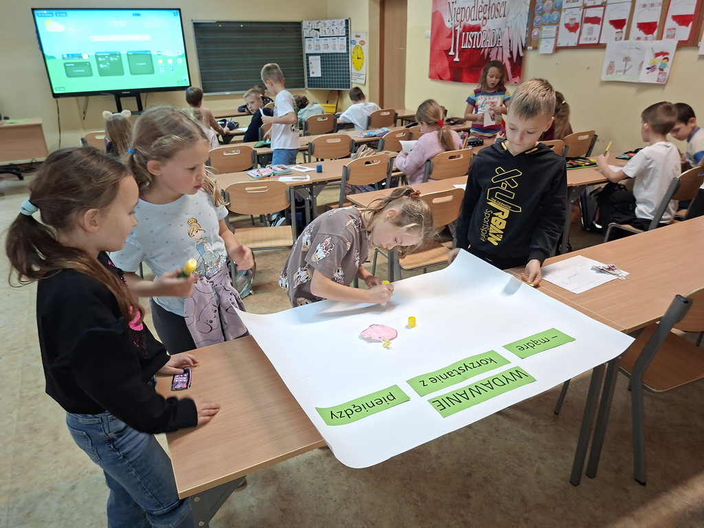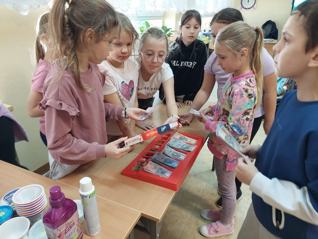 Uczniowie analizowali przedmioty pod kątem możliwości ponownego wykorzystania, naprawy lub modyfikacji, poznając zasady recyklingu. Ćwiczyli również odpowiedzialne zachowania zakupowe: sprawdzanie paragonów, kontrolowanie wydanej reszty oraz kulturalne zgłaszanie ewentualnych nieprawidłowości. Zapoznali się także z formami płatności dostępnych dla dzieci.