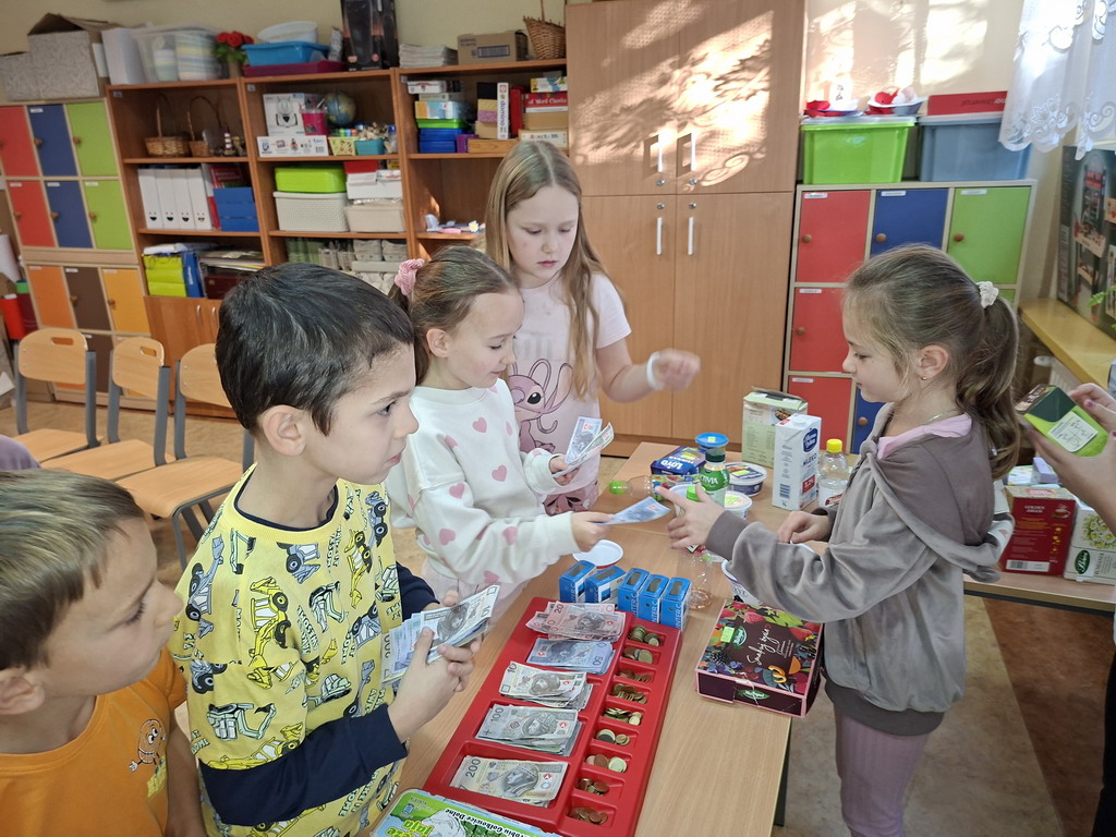 Podczas aktywności praktycznych dzieci odkryły, że pieniądze mogą występować w różnych formach - także elektronicznych. Bawiąc się w sklep, dokonywały prostych obliczeń pieniężnych, uczyły się gospodarowania budżetem oraz poznawały ceny podstawowych produktów spożywczych i higienicznych. Porównywały również ceny w różnych sklepach, ucząc się świadomego planowania zakupów i rozróżniania potrzeb od zachcianek.