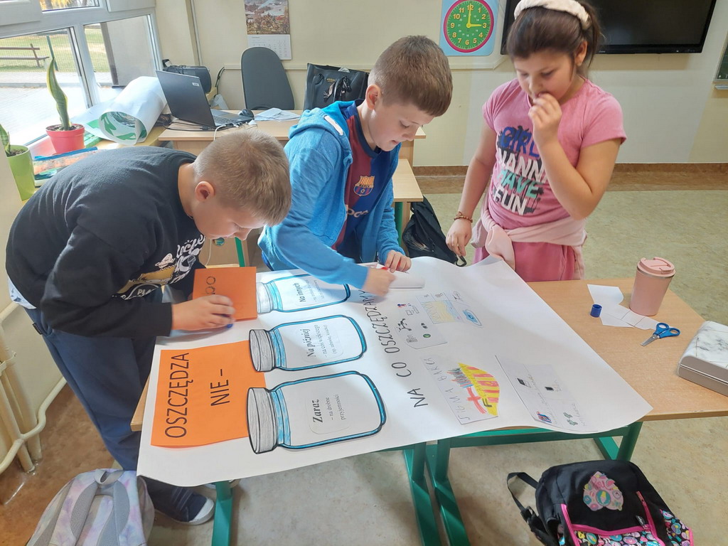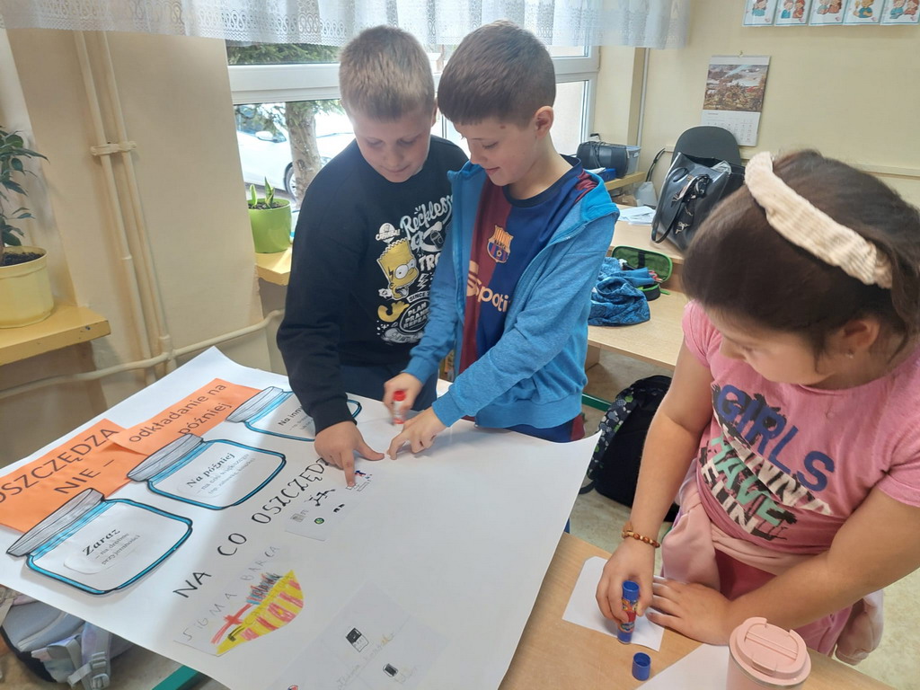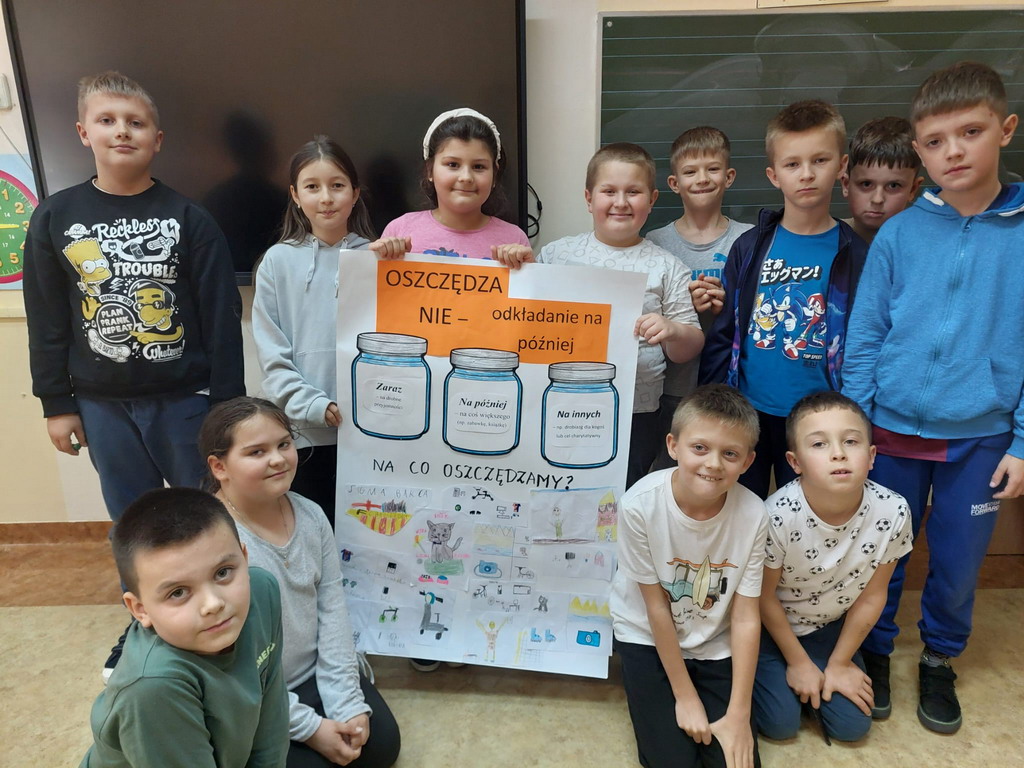 Dzieci poznały geneza powstania pieniędzy, ich funkcje oraz sposoby bezpiecznego przechowywania. Uczyły się rozróżniać podstawowe pojęcia ekonomiczne, takie jak: zarabianie, oszczędzanie, wydawanie. Zapoznały się również z polską walutą oraz walutami używanymi w krajach Unii Europejskiej. Jednym z zadań było wykonanie plakatów dotyczących oszczędzania, które pozwoliły uczniom twórczo podsumować zdobytą wiedzę.
