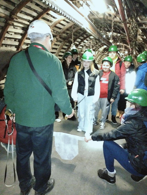 Kolejnym punktem programu była wizyta w kopalni Guido, której zwiedzanie rozpoczęło się pełnym wrażen zjazdem w głąb ziemi na poziom 320 metrów. Przemierzając podziemne korytarze uczniowie mieli okazję odkrywać fascynujący świat górnictwa - od historii i trudów pracy górników po nowoczesne elementy prezentujące rozwój wydobycia na przestrzeni lat.
