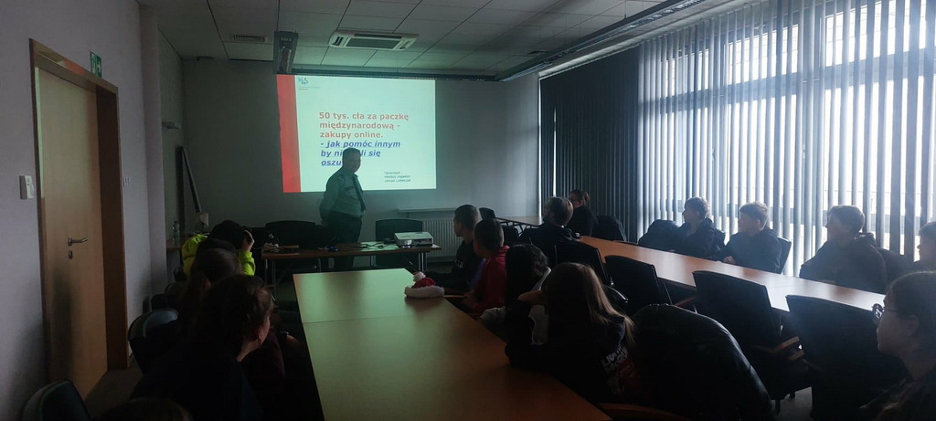 2 grudnia uczniowie klas 7 i 8 udali się na wycieczkę łączącą elementy edukacji o finansach, obywatelskiej i historii regionu. Pierwszym etapem było zwiedzanie Śląskiego Urzędu Celno-Skarbowego w Katowicach - Oddziału Celnego Pocztowego w Zabrzu, gdzie młodszy inspektor Janusz Ludwiczak przeprowadził prelekcję na temat kontroli celno-skarbowych. Uczniowie z zainteresowaniem wysłuchali informacji dotyczących specyfiki pracy urzędników, zasad kontroli oraz roli, jaką pełnią służby celne w funkcjonowaniu państwa.