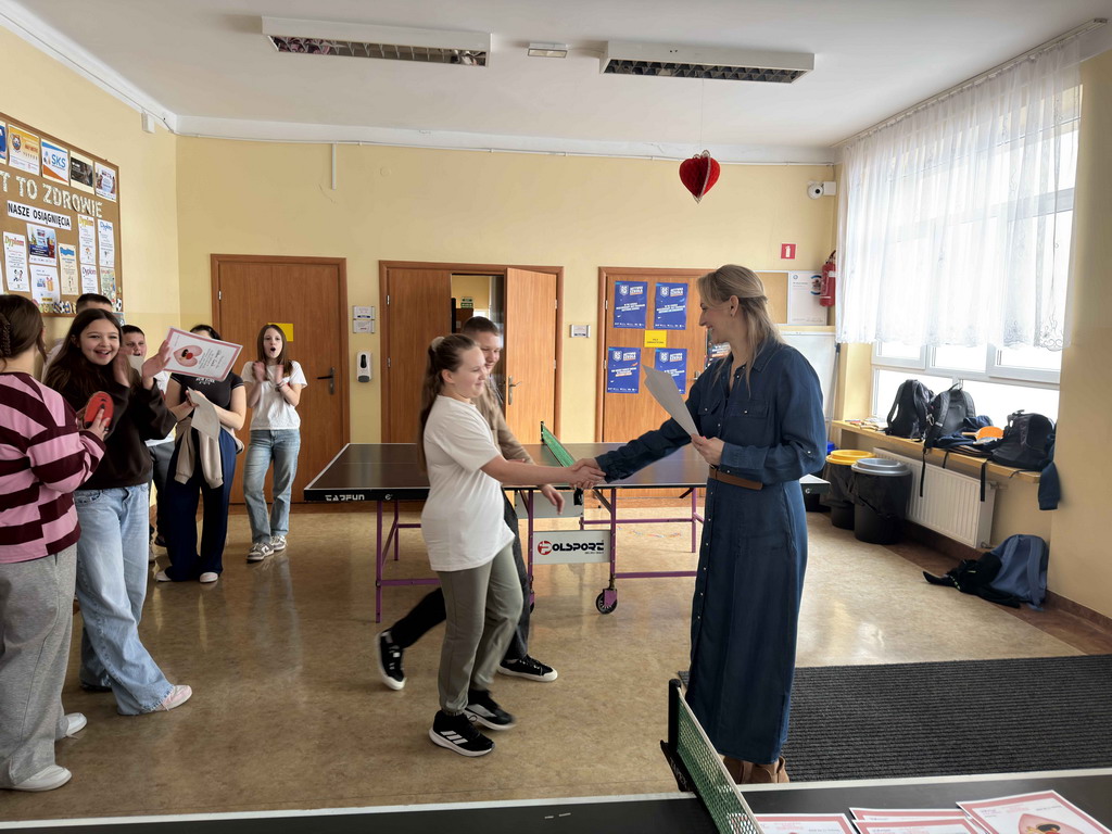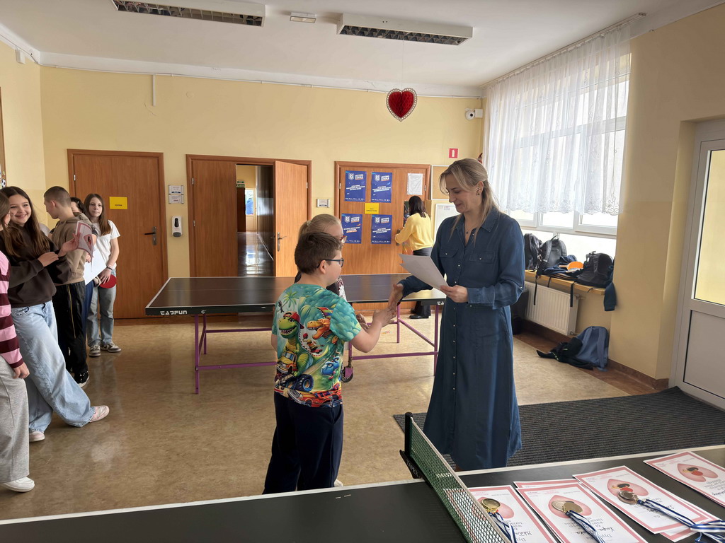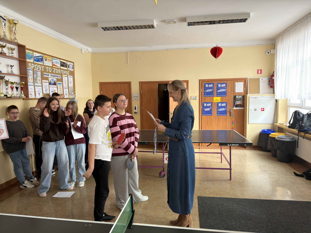 We wtorek 17 lutego w naszej szkole odbył się Walentynkowy Turniej Par w Tenisa Stołowego dla uczniów klas 4–6. Zawody rozegrano w formule debla, a każdą drużynę tworzyła para mieszana – chłopak i dziewczyna. Do rywalizacji stanęło wiele zespołów, które wykazały się dużym zaangażowaniem, sportową postawą oraz umiejętnością współpracy.
