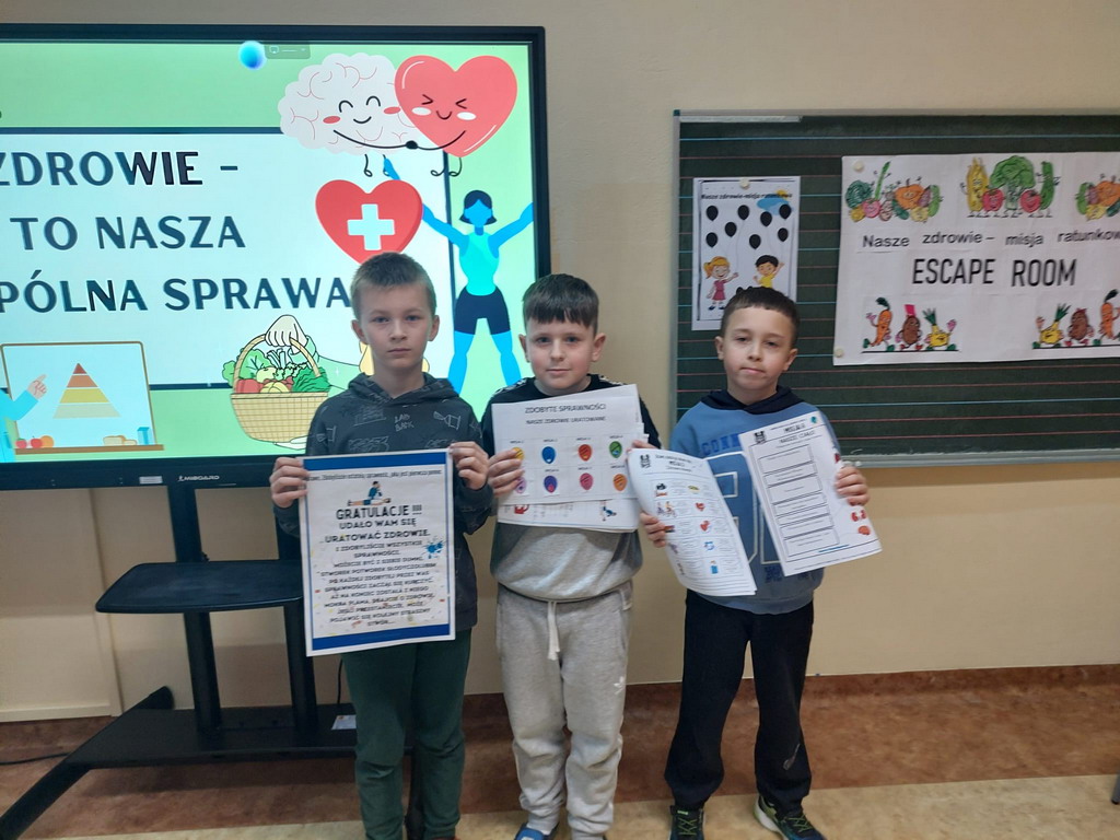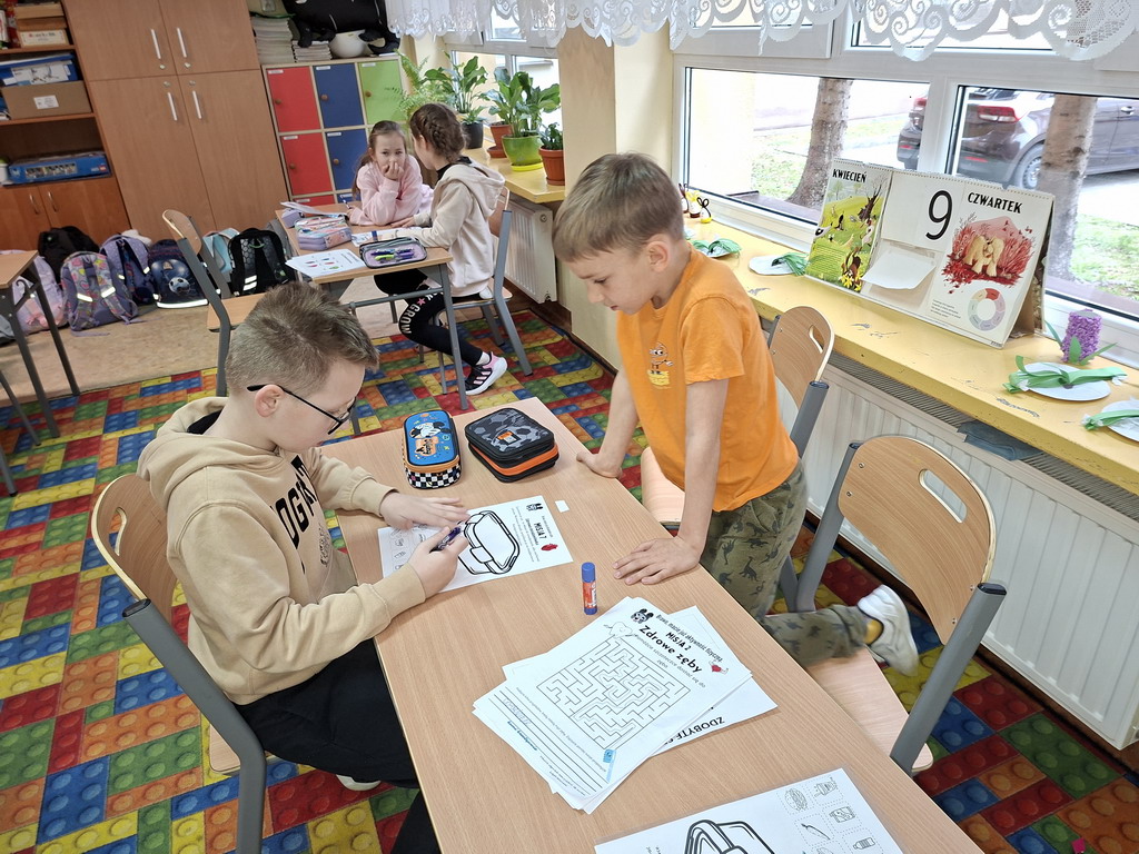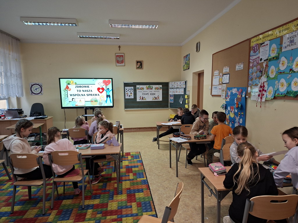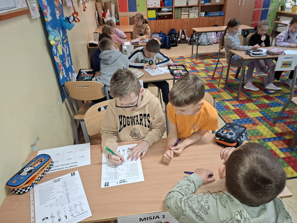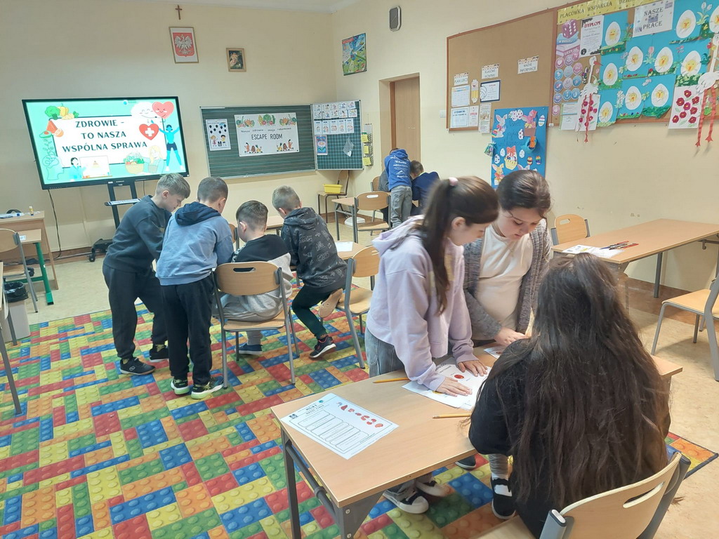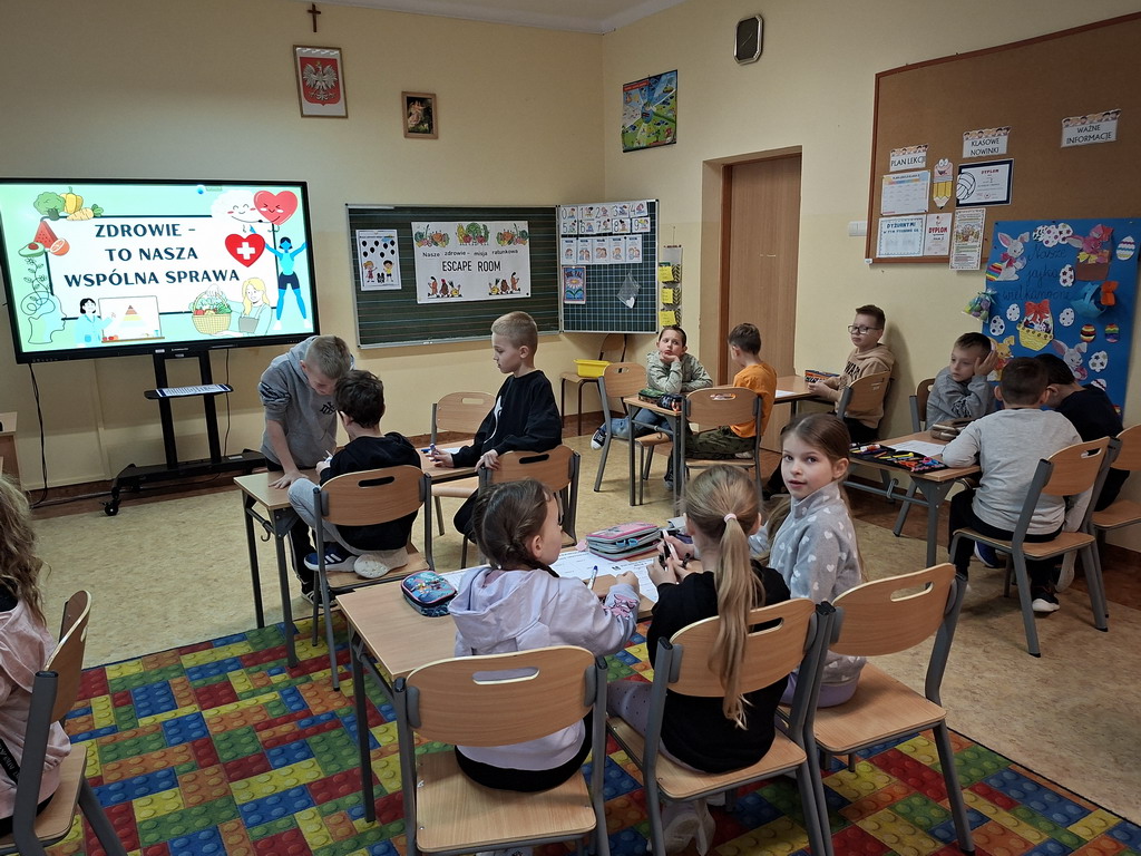 W Dniu 9 kwietnia uczniowie klas I-III wzięli udział w wyjątkowym escape roomie "Misja ratunkowa - Nasze zdrowie". Ich zadaniem było pokonanie potworka Słodyczolubka, który chciał pozbawić wszystkie dzieci zdrowia.
