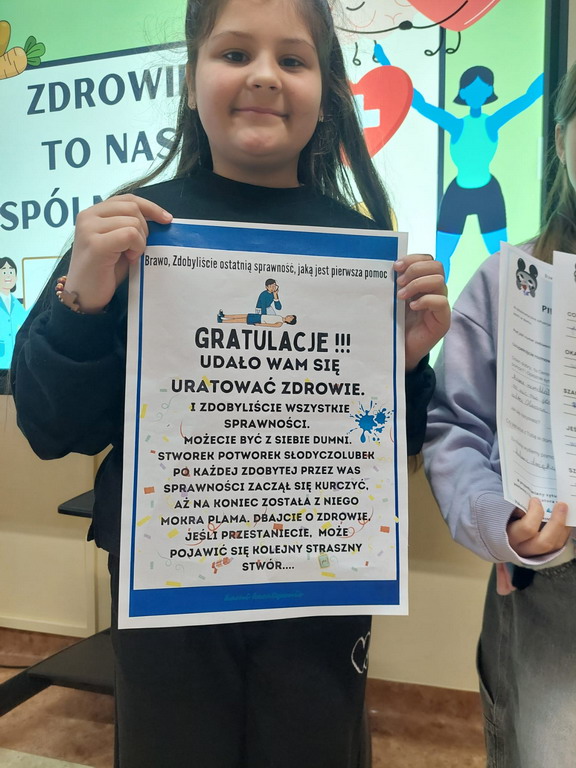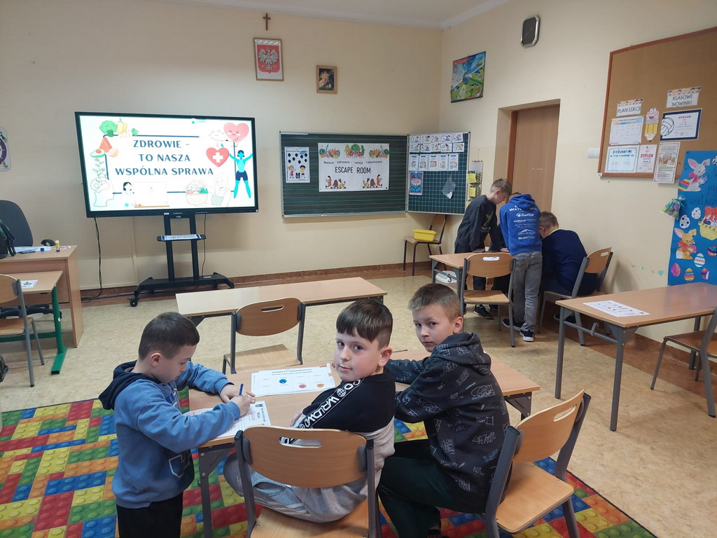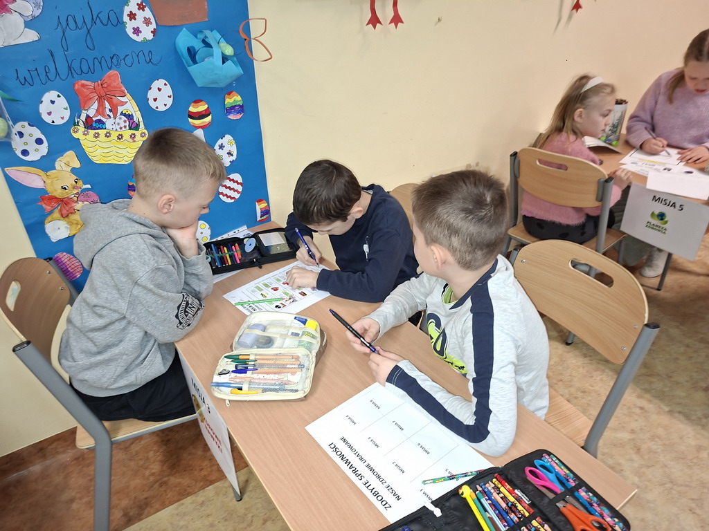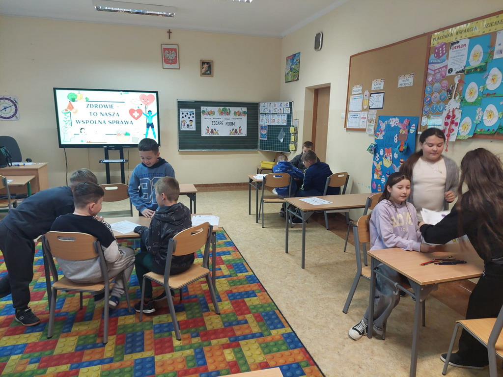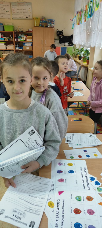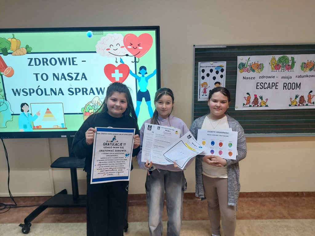 W Dniu 9 kwietnia uczniowie klas I-III wzięli udział w wyjątkowym escape roomie "Misja ratunkowa - Nasze zdrowie". Ich zadaniem było pokonanie potworka Słodyczolubka, który chciał pozbawić wszystkie dzieci zdrowia.